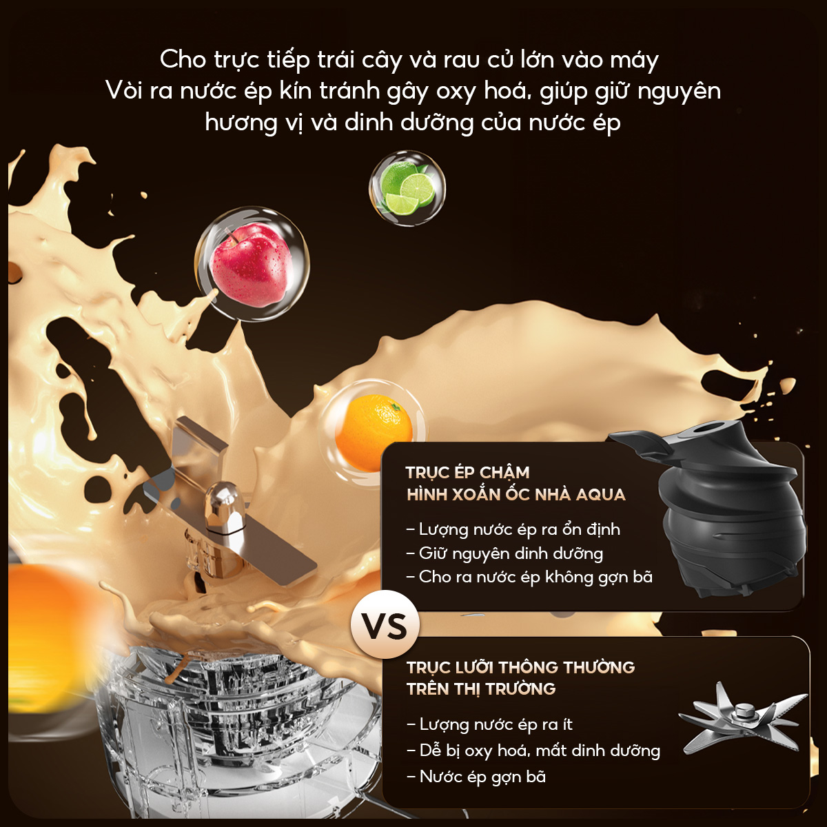 - Tốc độ vòng quay thấp, giữ trọn dinh dưỡng chất xơ