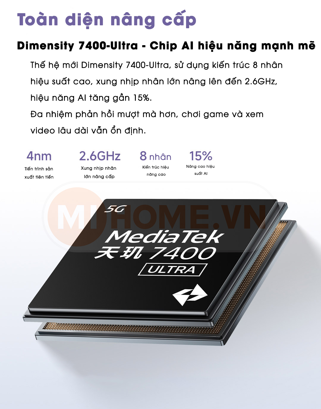 - Chip Dimensity 7400-Ultra – Hiệu năng I tăng 15%